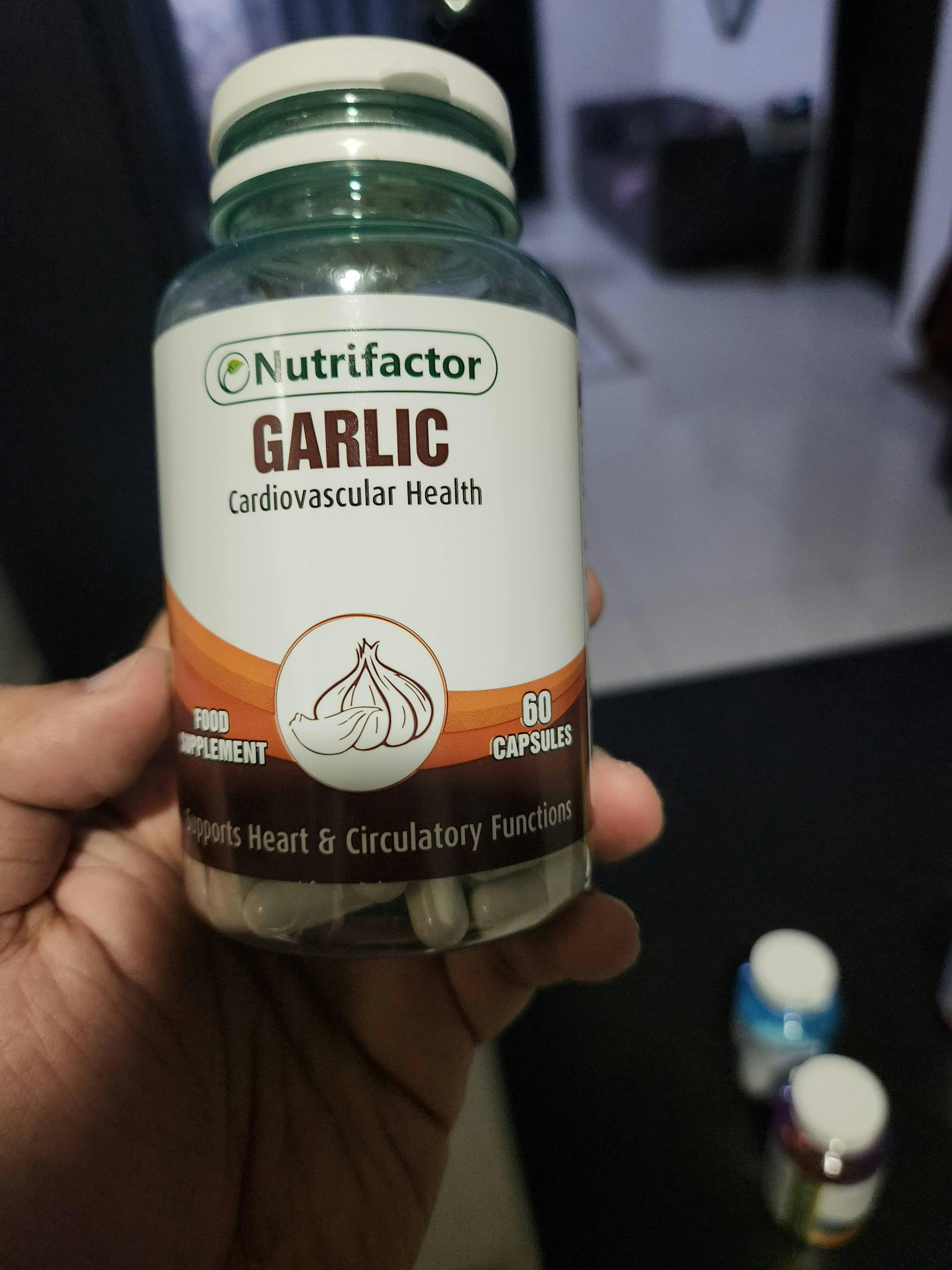 ۔Nutrifactor’s Garlic ایک ہربل فارمولا ہے جو میں لہسن کےایکسٹریکٹ پر مشتمل ہے جس میں ایلیسن سمیت متعدد فائدہ مند مرکبات کے ساتھ ایلیسن شامل ہے جو ایک اہم فعال مرکب ہے، یہ دل کی صحت اور دوران خون کے نظام کو بہتر بنانے میں مدد کرتا ہے۔