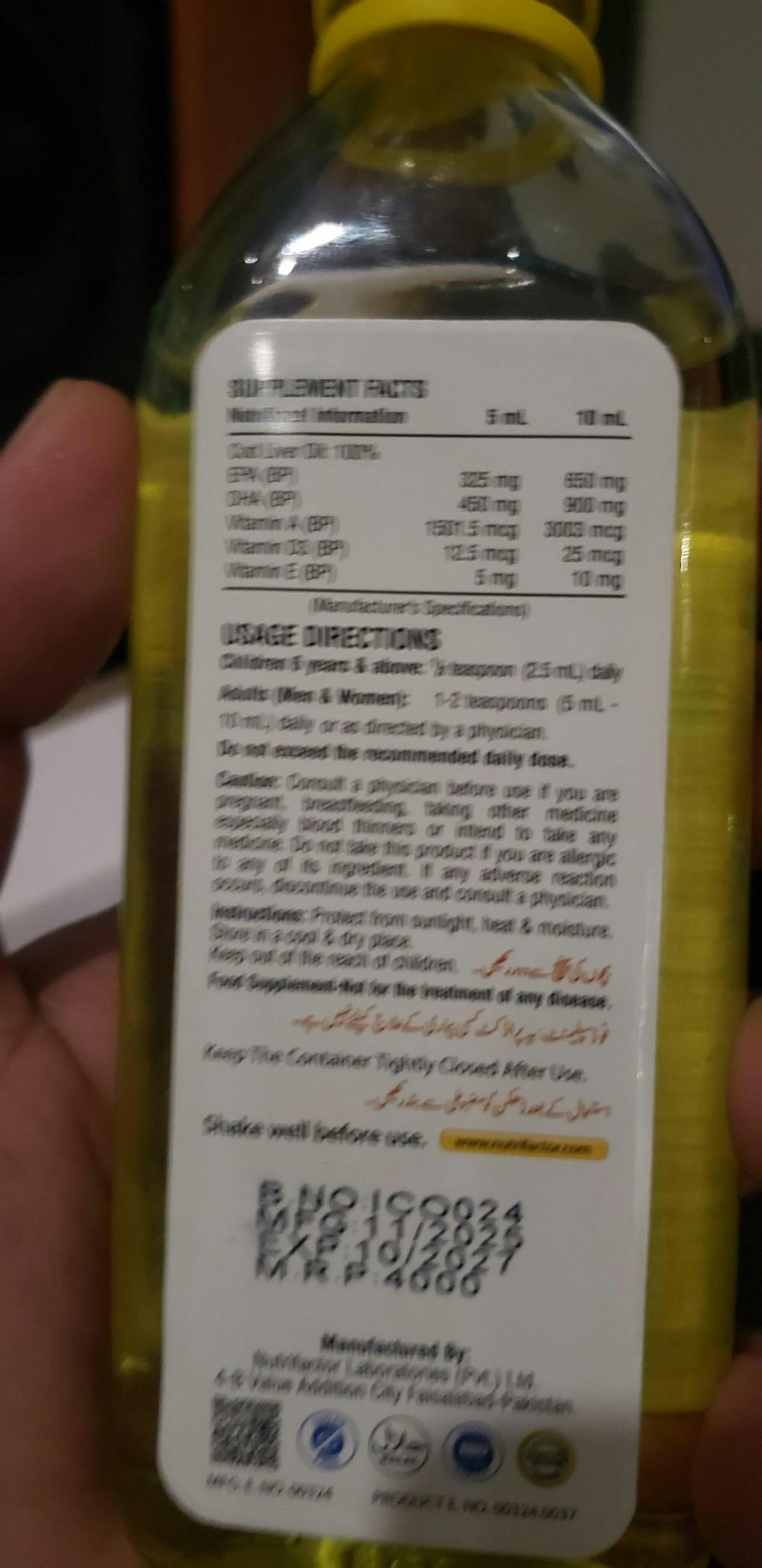نیوٹریفیکٹر کا Icelandic Cod Liver Oil تازہ کوڈ فِش کے جگر سے حاصل کیا جاتا ہے، جو اومیگا تھری فیٹی ایسڈز سے بھرپور ہوتا ہے۔ اس میں وٹامن A، وٹامن D، اور ضروری فیٹی ایسڈز جیسے EPA اور DHA شامل ہوتے ہیں۔